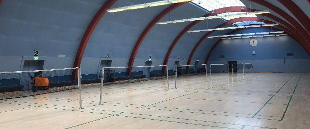 Du lejer en badmintonbane i Hermes Hallen på Frederiksberg.