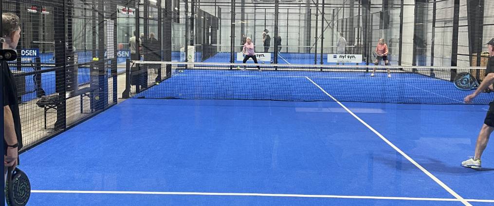 Du booker en indendørs padelbane (double, til 4 personer) hos Padel 6100 Haderslev.