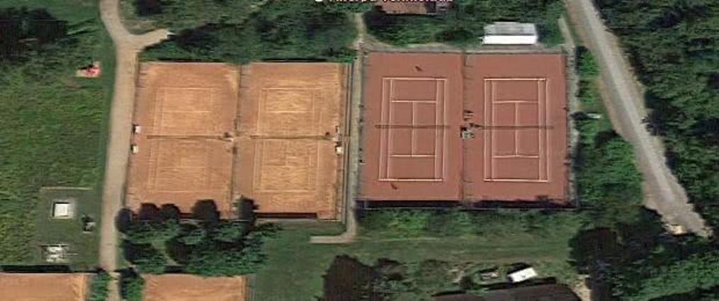 Tennisbanen er udendørs grusbane.