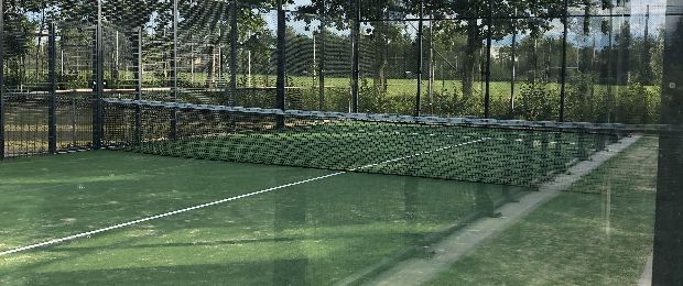 Padelbanen har kunstgræs med sand som underlag.